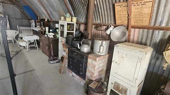 A corrugated iron hut displaying the ‘make do’ housing used by some of the 250 ex-servicemen in our region who were granted horticultural properties as part of the government’s repatriation scheme after WWII. The Village Nissen Hut has been furnished to show the living conditions of the early ‘blockies’ and their families. Initially, huts like this did not have domestic water or electricity. Water had to be carted in tanks on block trolleys pulled by horse or tractor.