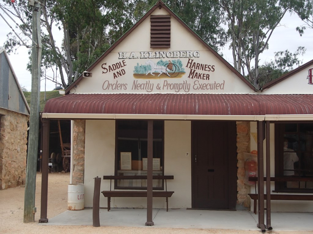 This building is a replica of Klingberg's Saddlery Shop which commenced business on East Terrace in 1909. Albert Klingberg of Tanunda rode his bike to Loxton (appox. 180kms) to assess the viability of a saddlery business in the new town of Loxton and consequently established Klingberg's Saddlery and Harness Making Shop. As the years progressed and farmers began using tractors instead of horses, the saddlery business declined until eventually closing in 1946. Aspects of saddle making can still be experienced within The Village replica today.